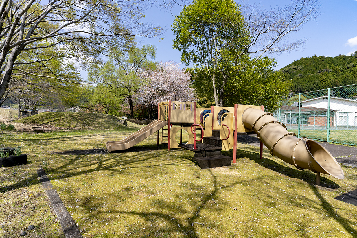 長町営グラウンド野球場の脇にある公園で、アスレチック遊具と小山のトンネルで遊べます。芝生の公園なのでピクニック気分も満喫。「下泉駅」に停車するSLの勇姿も間近に見ることができます。
